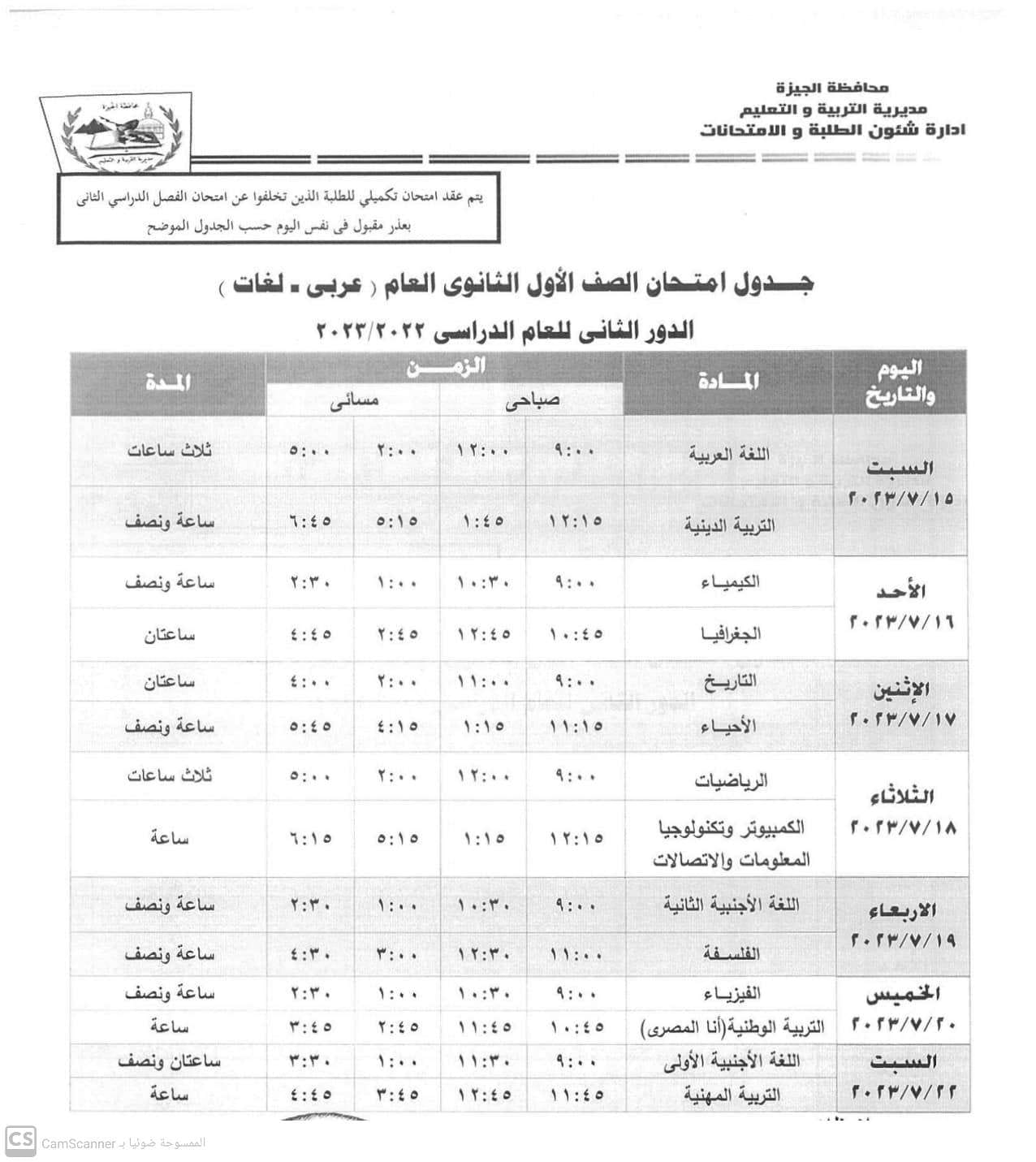 أعتمد اللواء أحمد راشد محافظ الجيزة والأستاذ أشرف سلومة وكيل وزارة التربية والتعليم بالجيزة مواعيد إمتحانات وجداول " الدور الثانى " للعام الدراسى 2022/2023