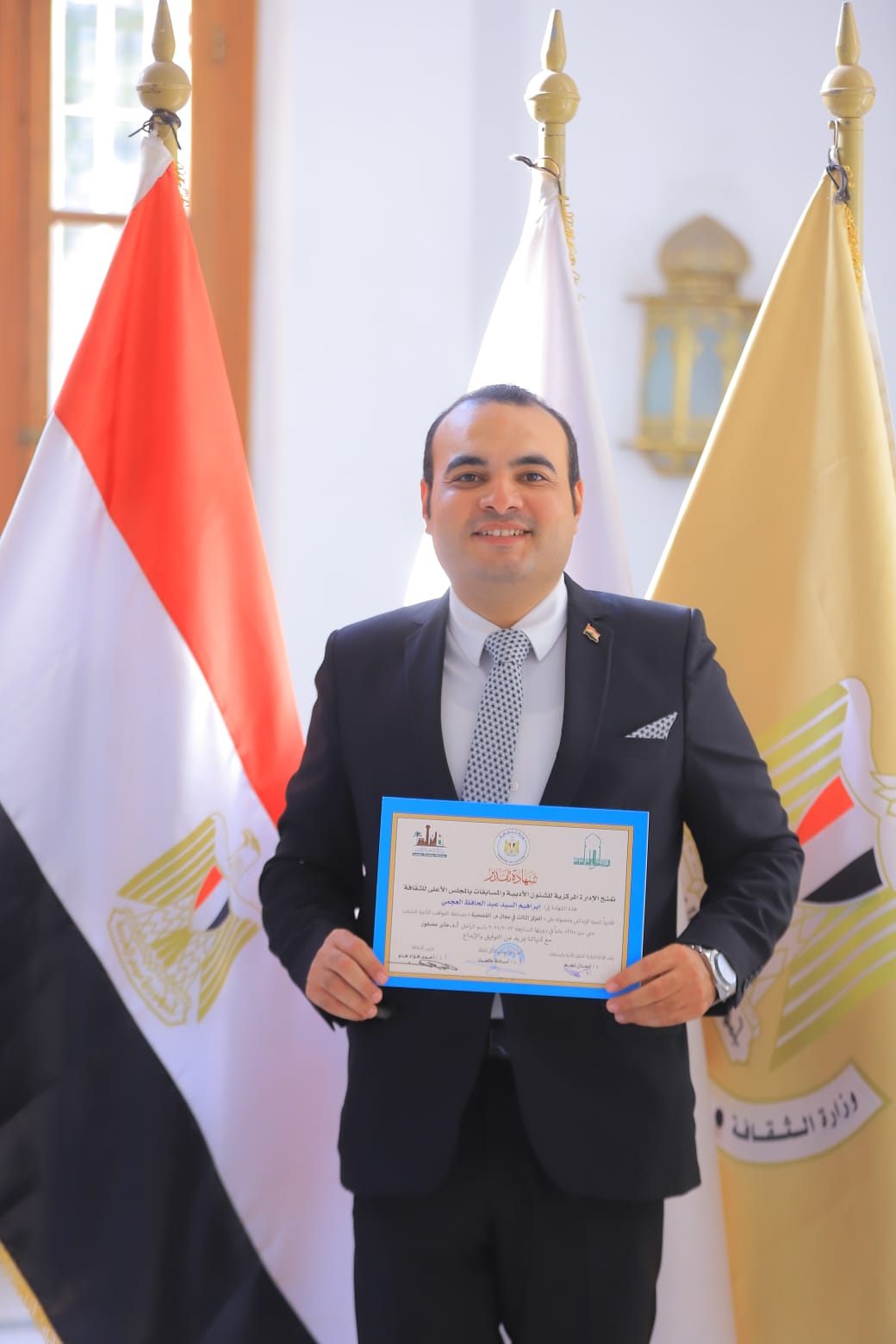 كرم الدكتور أحمد فؤاد هنو، وزير الثقافة الكاتب الصحفي والروائي إبراهيم العجمي عن مشاركته في مسابقة المواهب الأدبية للشباب والتي تحمل إسم الراحل الدكتور "جابر عصفور "عن المجموعة القصصية "خلف خطوط الزمن".