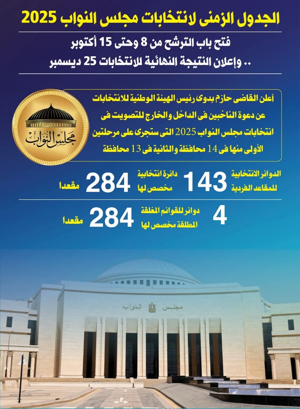 الهيئة الوطنية تعلن الجدول الزمنى لانتخابات مجلس النواب 2025