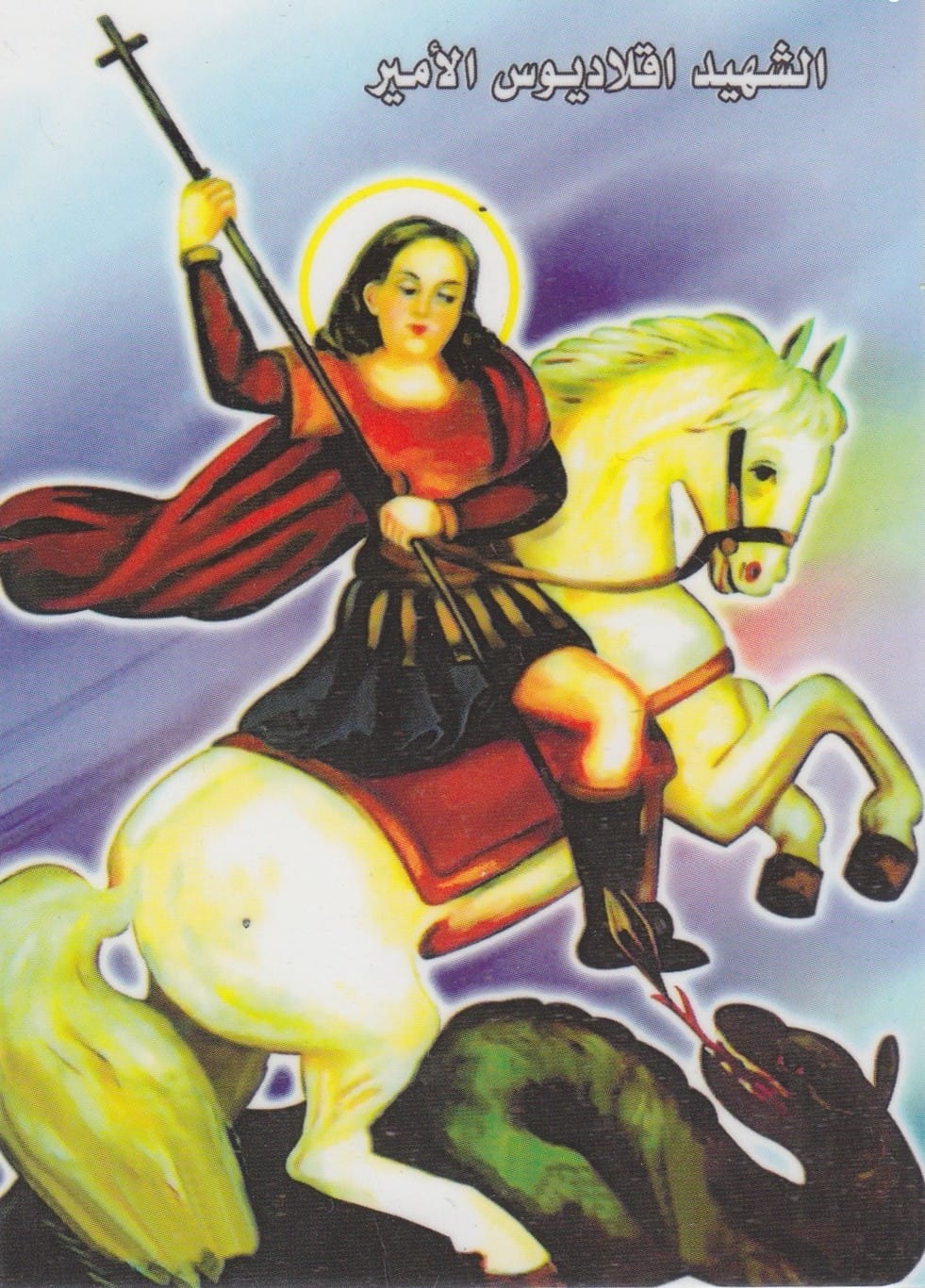 وأضاف غالي ان الشخصية الرئيسة هي شخصية امير فارس كان محبوبا من جميع أهل إنطاكية لحسن صورته وشجاعته ولمحبتهم له عملوا له صورة وعلقوها على باب مدينة إنطاكية ولما كفر «دقلديانوس» إمبراطور الرومان وأثار الاضطهاد على المسيحيين فأعلن الامير الاستشهاد من أجل اسم المسيح، واستحضره دقلديانوس وعرض عليه عبادة الأوثان ووعده أن يجعله مكان أبيه، فلم يلتفت «أقلاديوس» إلى وعوده وخاطبه بكل جرأة موبخا إياه على عبادته الأوثان فلم يجسر الملك على أن يمسه بأذى لمحبة الانطاكيين له فأشار عليه «الوزير رومانس» بإرساله إلى مصر ليقتل هناك فأرسله مصحوبا بكتاب إلى «والي مدينة أنصنا» بالصعيد يقول له فيه ان اقلاديوس لم يخضع لآمرنا ولا أذعن لقولنا فلاطفه بكل جهدك أولا فان لم يرجع عن رأيه فاقطع رأسه.