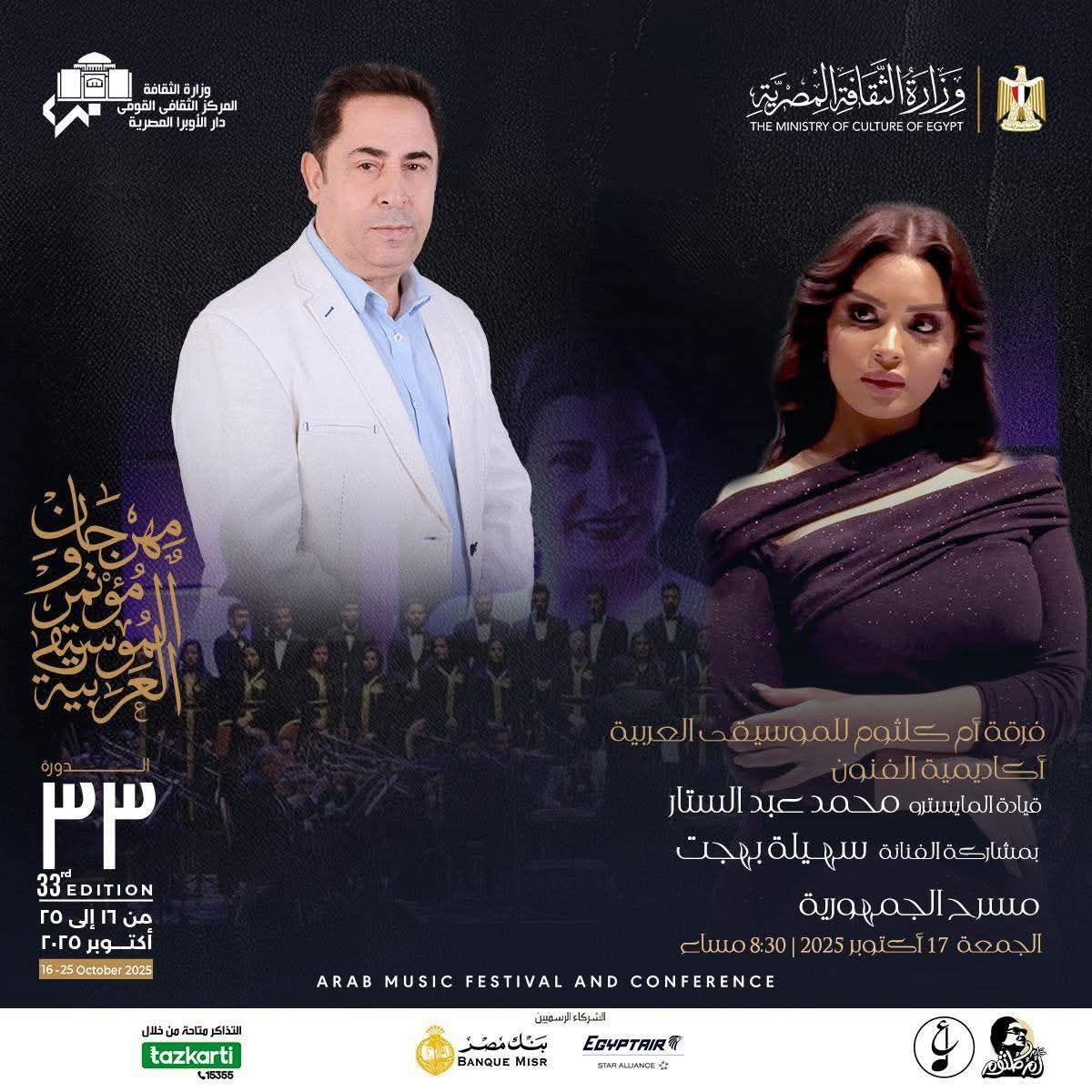 ويحتضن مسرح الجمهورية حفلا للنجمة سهيلة بهجت بمصاحبة فرقة أم كلثوم للموسيقى العربية بقيادة المايسترو الدكتور محمد عبدالستار .