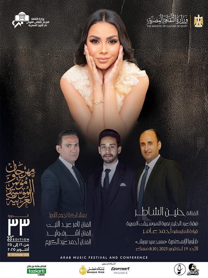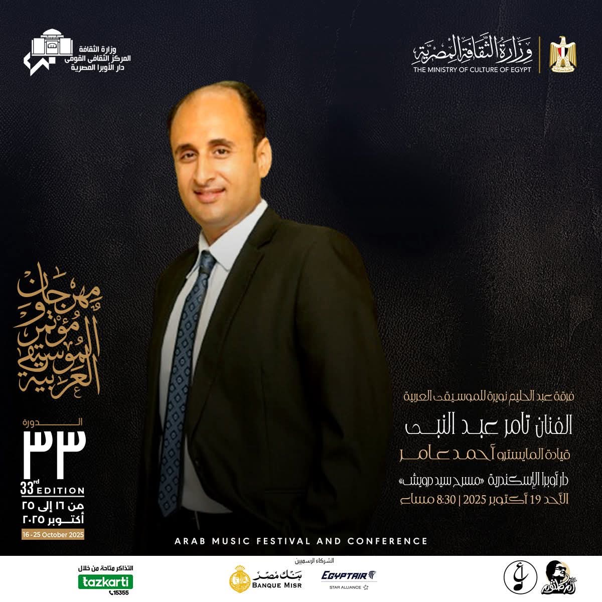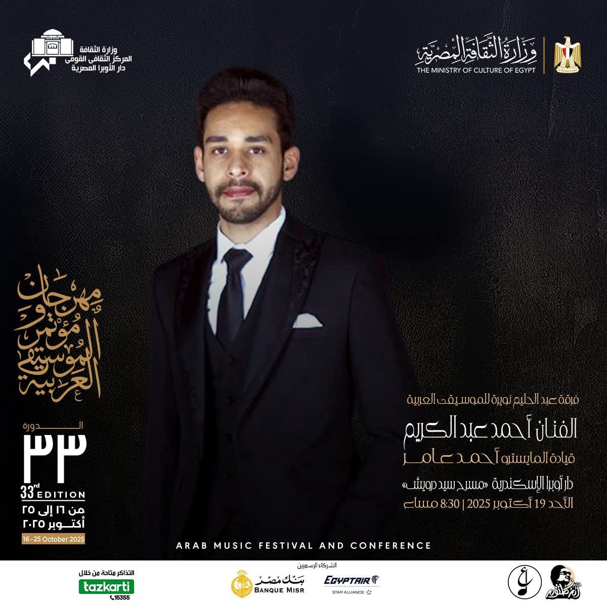 تتوالى فعاليات مهرجان ومؤتمر الموسيقى العربية في دورته الثالثة والثلاثين، الذي تنظمه وزارة الثقافة عبر دار الأوبرا المصرية برئاسة الدكتور علاء عبد السلام، حيث تُقام في التاسعة مساء الأحد 19 أكتوبر 4 حفلات على التوازى .