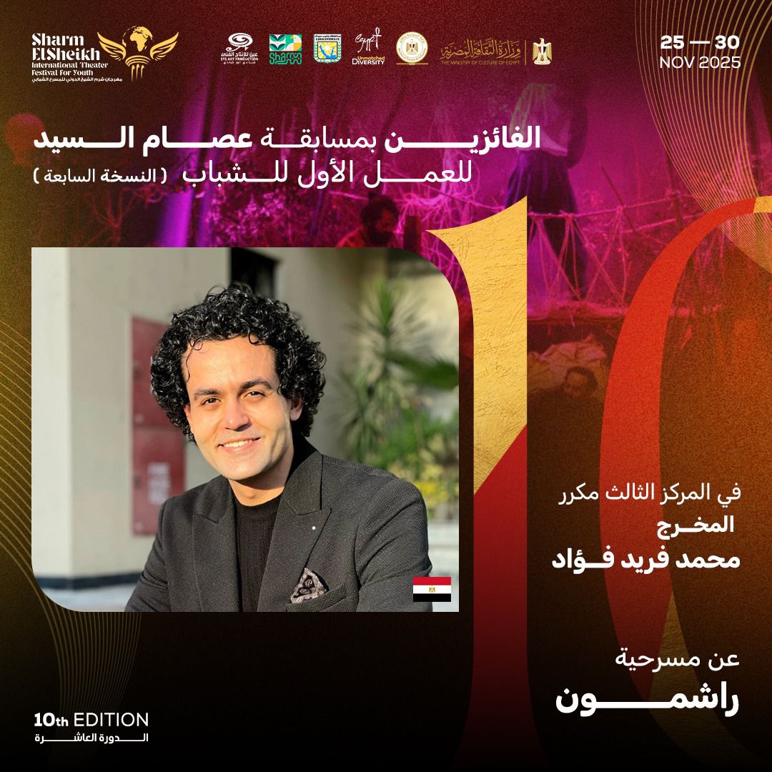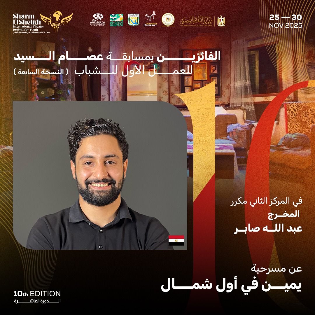 أعلن مهرجان شرم الشيخ الدولي للمسرح الشبابي، برئاسة الفنان مازن الغرباوي، أسماء الفائزين في مسابقة العمل الاول للشباب في الاخراج والمعروفة باسم المخرج الكبير عصام السيد، والتي تعد من أبرز مسابقات المهرجان المخصصة لاكتشاف ودعم المواهب الإخراجية الشابة.