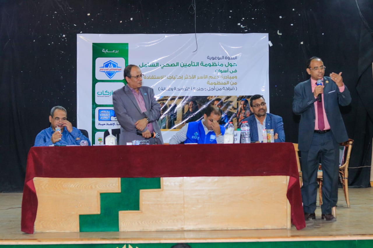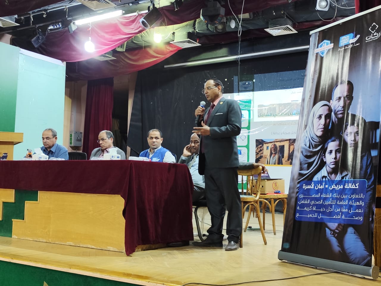 تحت رعاية السيد اللواء/ محافظ أسوان، نظم بنك الشفاء المصري بالتعاون مع مؤسسة الناس لبعضهم للأعمال الخيرية والتنمية (PFEO) مؤتمرًا موسعًا بمحافظة أسوان، بحضور قيادات المنظومة الصحية والتنفيذية، وفي مقدمتهم السيد رئيس هيئة التأمين الصحي الشامل بأسوان، ومسؤولو وزارة التضامن الاجتماعي، ونقابة المعلمين ممثلة في السيد/ نقيب المعلمين بأسوان، إضافة إلى عدد من الشخصيات البارزة من المجتمع المدني.
