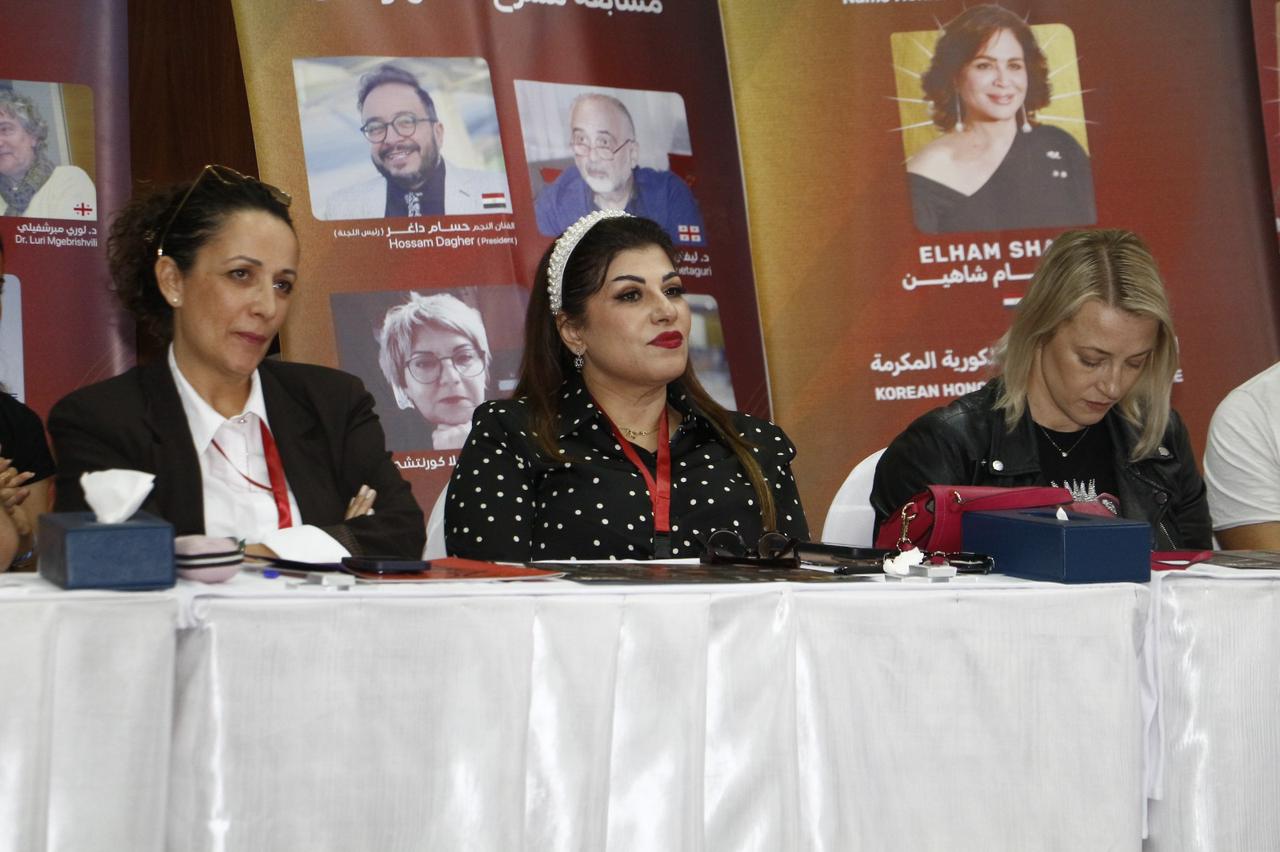المخرج الدكتور عبد الكريم بن علي بن جواد اللواتي من سلطنة عمان، الذي تحدث عن مشروع المسرح الوطني وتطور المهرجان المسرحي العماني، والكاتبة والإعلامية رولا الهباهبة التي تحدثت عن شركتها الفنية وورشها الموجهة لذوي الاحتياجات الخاصة، معبرة عن سعادتها بعضوية لجنة تحكيم مسابقة مسرح الطفل.