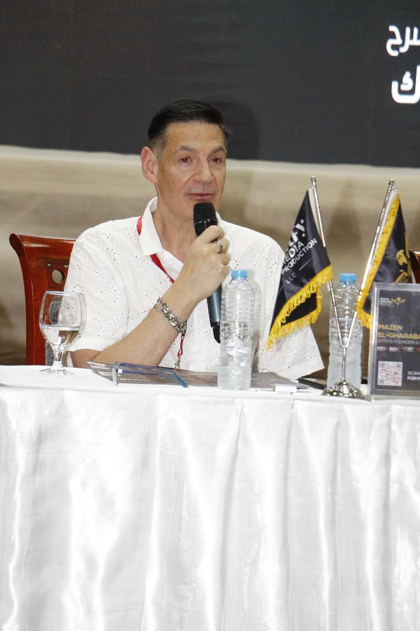 وفي كلمته الافتتاحية، أعرب المخرج مازن الغرباوي عن فخره بهذا اللقاء النوعي، مؤكدًا أن المهرجان منذ انطلاقه اعتمد على مبدأ التواصل بين الثقافات كركيزة أساسية لمشروعه. وأشار إلى أن الدبلوماسية الثقافية ليست مجرد شعار، بل ممارسة واقعية تُترجم عبر التعاون المشترك وتبادل الرؤى، بما يثري الحركة المسرحية ويمنح الشباب فرصًا أوسع للتجربة والتطور.