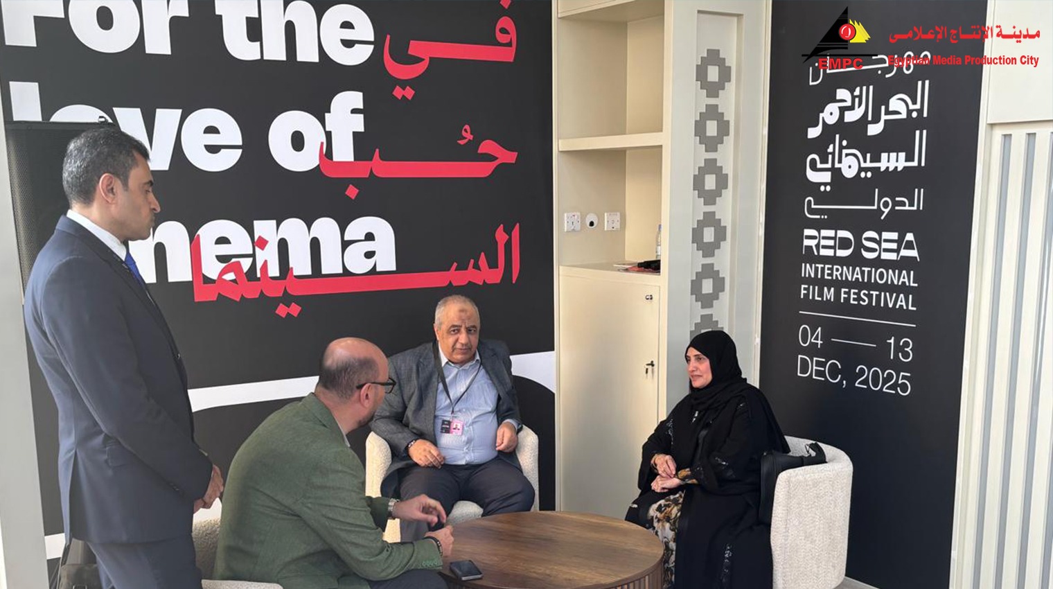 شهد جناح مدينة الإنتاج الإعلامي بمهرجان البحر الأحمر السينمائي الدولي الذي تقام فعالياته حالياً بمدينة جدة علي ساحل البحر الأحمر بالمملكة العربية السعودية ، العديد من اللقاءات والإجتماعات بين الوفد الرسمي للمدينة مع عدد من ضيوف المهرجان من الأكاديميين والمخرجين والمنتجين من الشخصيات الفاعلة في مجالات صناعة السينما والإعلام العربية والأجنبية .