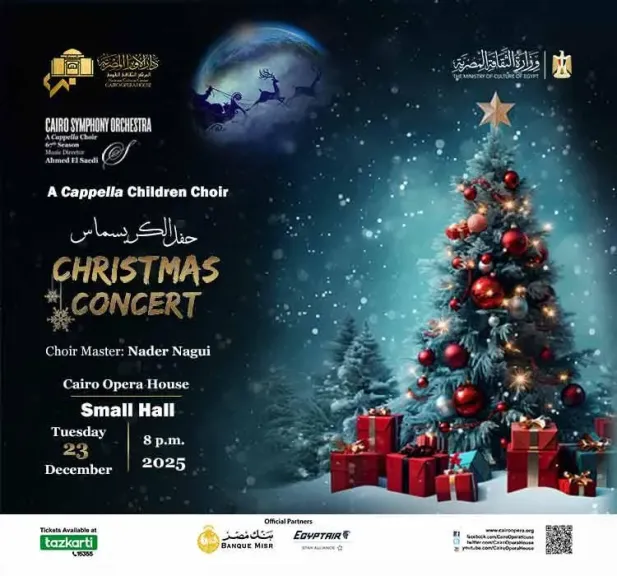 استمراراً لإحتفالات دار الأوبرا المصرية برئاسة الدكتورة علاء عبد السلام بأعياد الكريسماس يقام حفل لكورال أكابيلا للأطفال بقيادة المايسترو نادر ناجى وتحت إشراف المدير الفنى والقائد الأساسى لأوركسترا القاهرة السيمفونى المايسترو أحمد الصعيدى وذلك فى الثامنة مساء الثلاثاء 23 ديسمبر على المسرح الصغير .