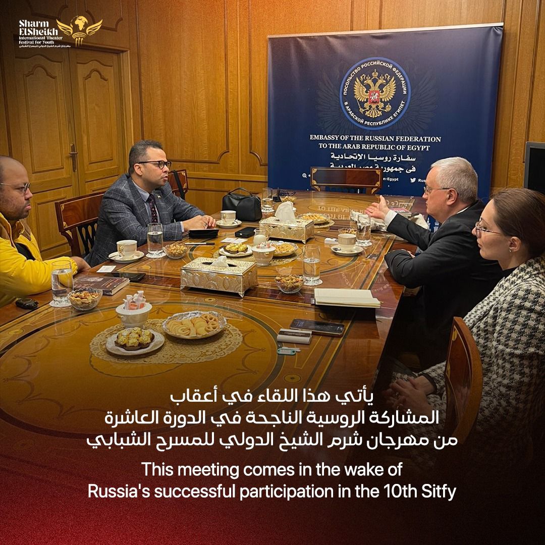 جاء هذا اللقاء في أعقاب المشاركة الروسية الناجحة في الدورة العاشرة من مهرجان شرم الشيخ الدولي للمسرح الشبابي، حيث قدم مسرح الدولة لمدينة سانت بطرسبرغ الثقافية "مسرح المشاهدين الشباب أ.أ. بريانتسيف" عرضاً مسرحياً بعنوان "الجمال" على مسرح قصر ثقافة شرم الشيخ، والذي لاقى استحساناً كبيراً من الجمهور المصري وأعضاء لجنة التحكيم الدولية.