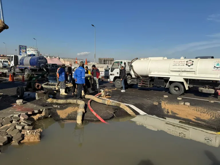 كسر بخط صرف صحي كبير بالتسعين الجنوبى..ولا تأثير على مياه الشرب بالقاهرة الجديدة