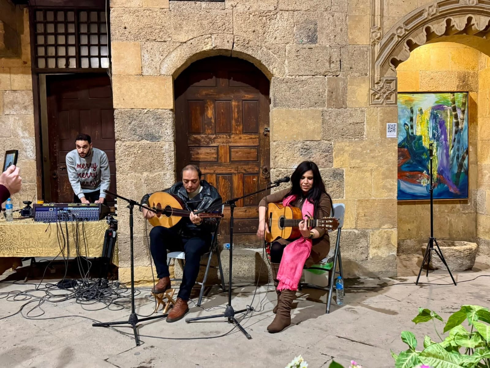 حيث بدء إفتتاح المعرض بكلمه الموسيقار راجح دوواد،واعقبه عزف موسيقى جيتار وعود، كما صاحبه مجموعة من الأغاني المصريه القديمه للمطربه بسمه البنداري.