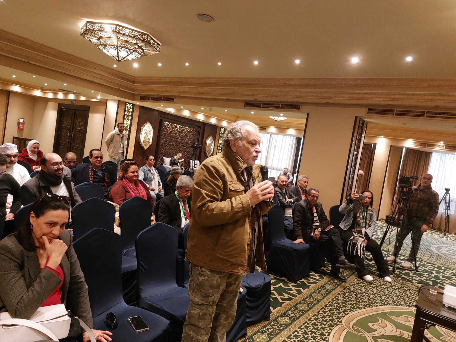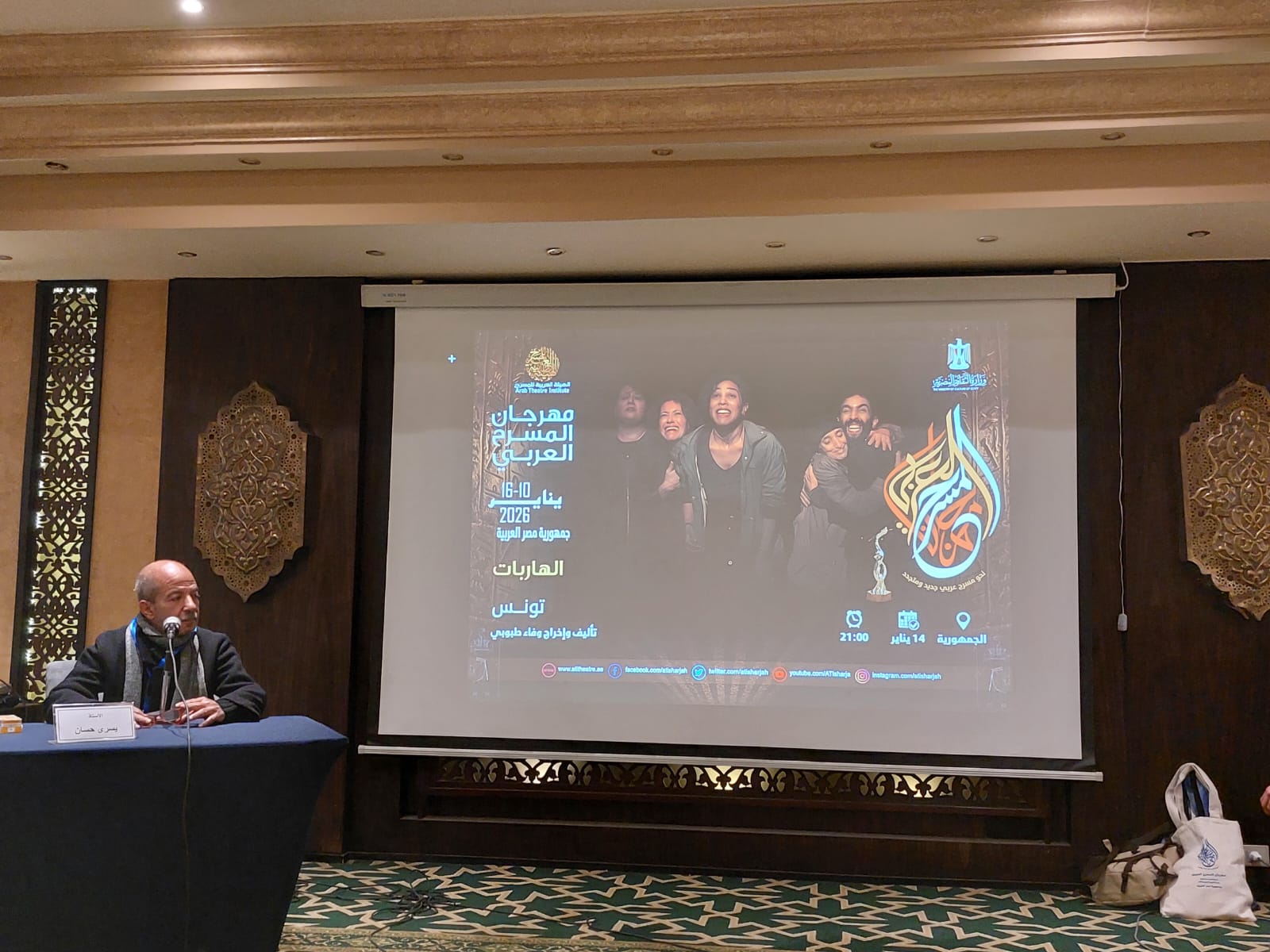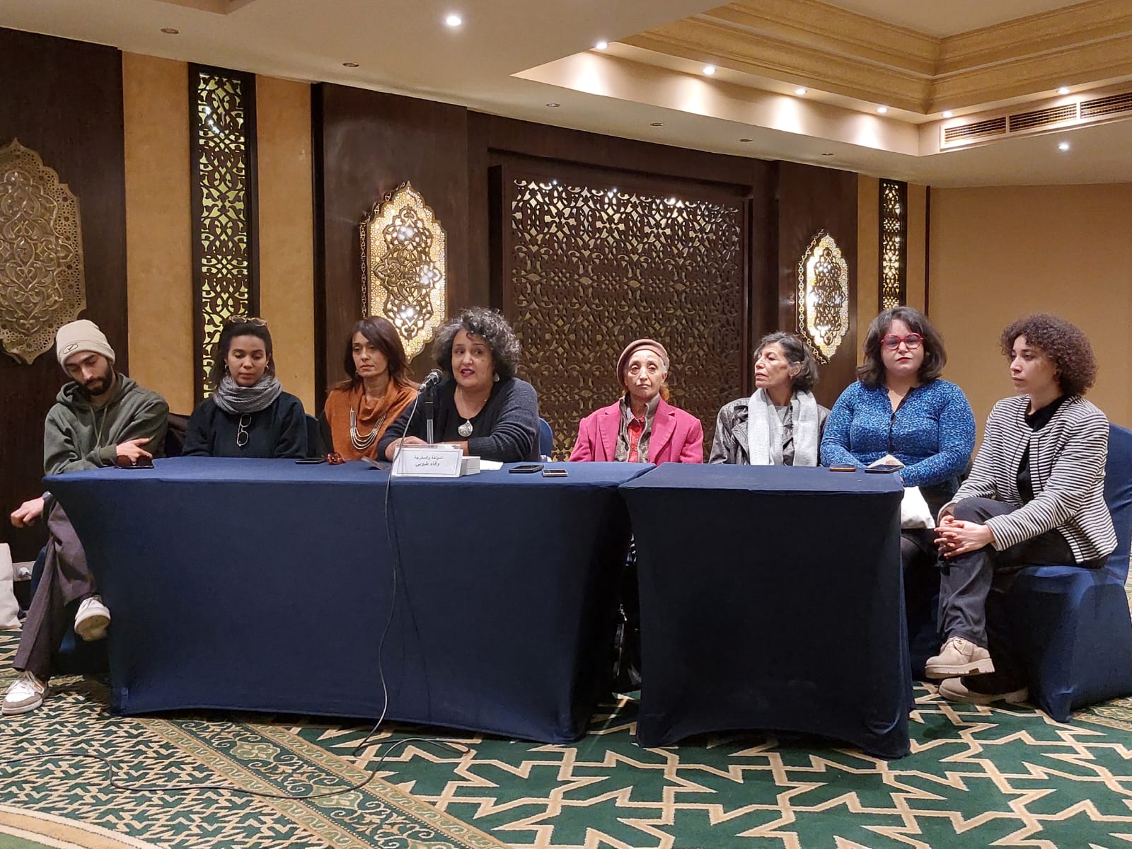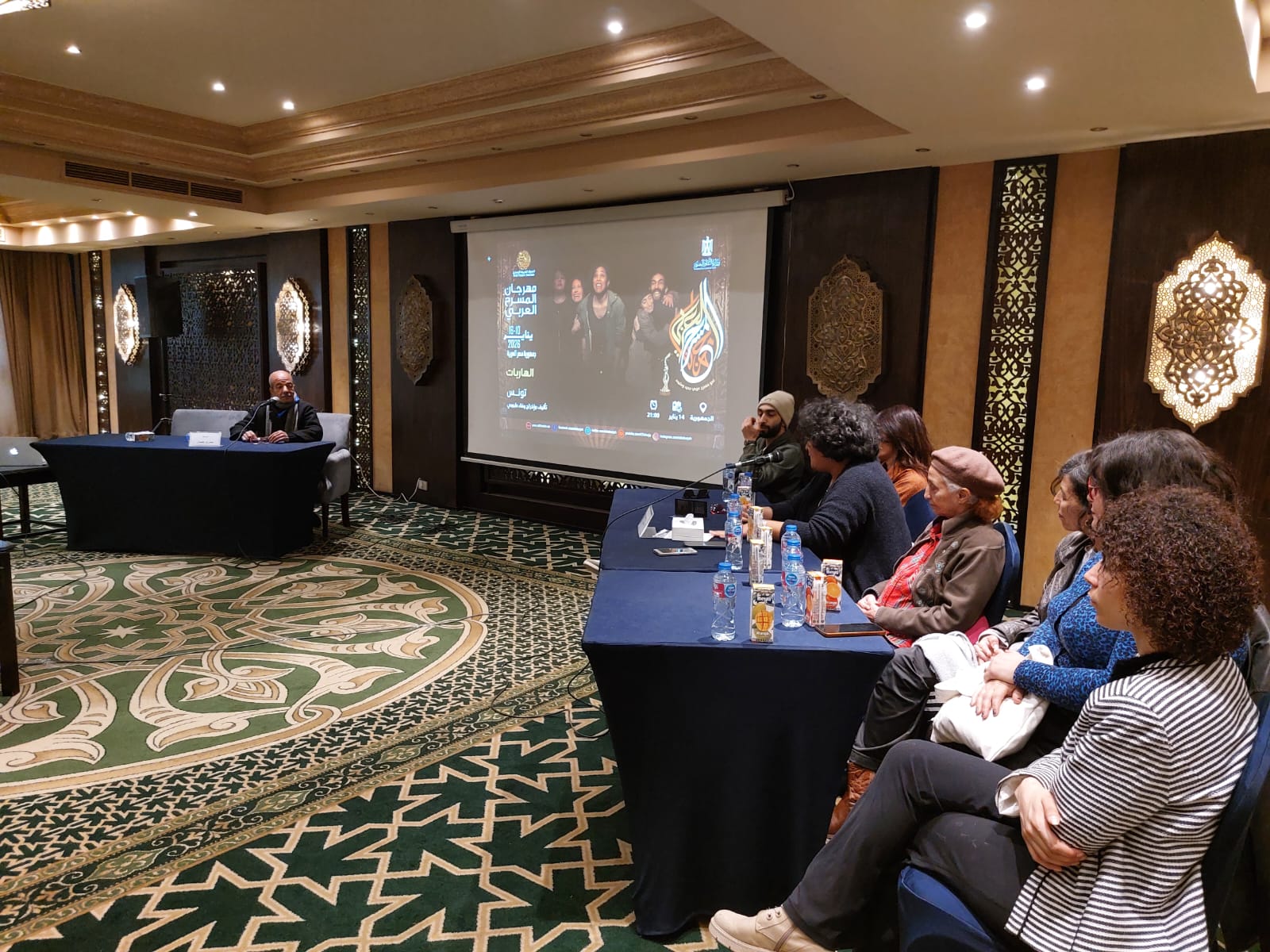 وتحدث فريق العمل الحاضر فى منصة الندوة، «الفنانة فاطمة بن سعيدان، الفنانة منيرة الزكراوي، الفنانة لبنى نعمان، الفنان أسامة الحنايني، الفنانة أميمة البحري، الفنانة صبرين عمر»، وعبير القمري مساعدة المخرجة، عن أعمالهم السابقة، كما أعربوا عن سعادتهم بالعمل مع مخرجة متميزة وجادة فى عملها وعاشقة للمسرح .