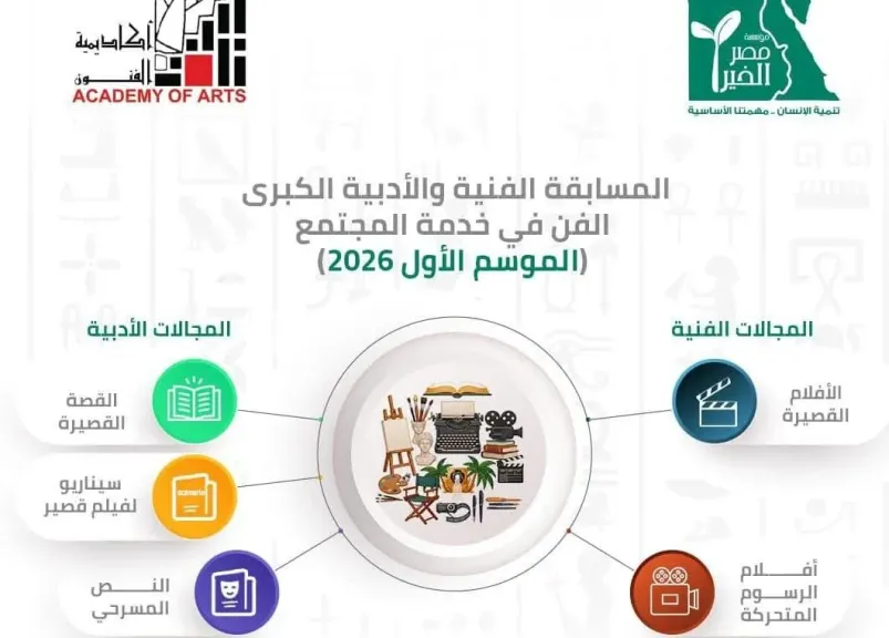 تعلن مؤسسة مصر الخير، بالتعاون مع أكاديمية الفنون عن إنطلاق الموسم الأول للمسابقة الفنية والأدبية الكبرى تحت شعار" الفن في خدمة المجتمع".