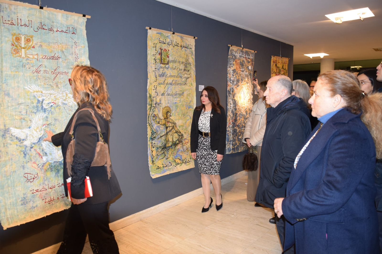 وفي هذا السياق، نظّمت الأكاديمية معرضًا فنيًا متميزًا للفنانة الإيطالية أنطونيلا ليوني، المعروفة بولعها بالحضارة المصرية، حيث قدّمت مجموعة من لوحاتها المنفذة على نبات البردي، في تجربة فنية فريدة تعانق الحضارتين المصرية والإيطالية. وقد رافقت أعمالها كلمات مختارة من الشعر المنتمي للثقافة المصرية، إلى جانب توظيف بعض آيات من القرآن الكريم، في رسالة فنية تعبّر عن التعايش والحوار بين الثقافات والأديان.