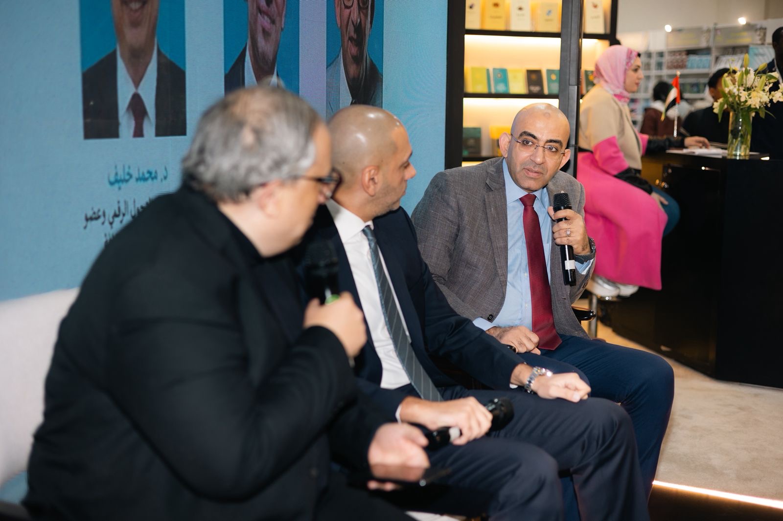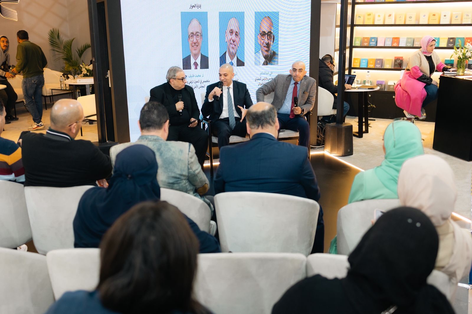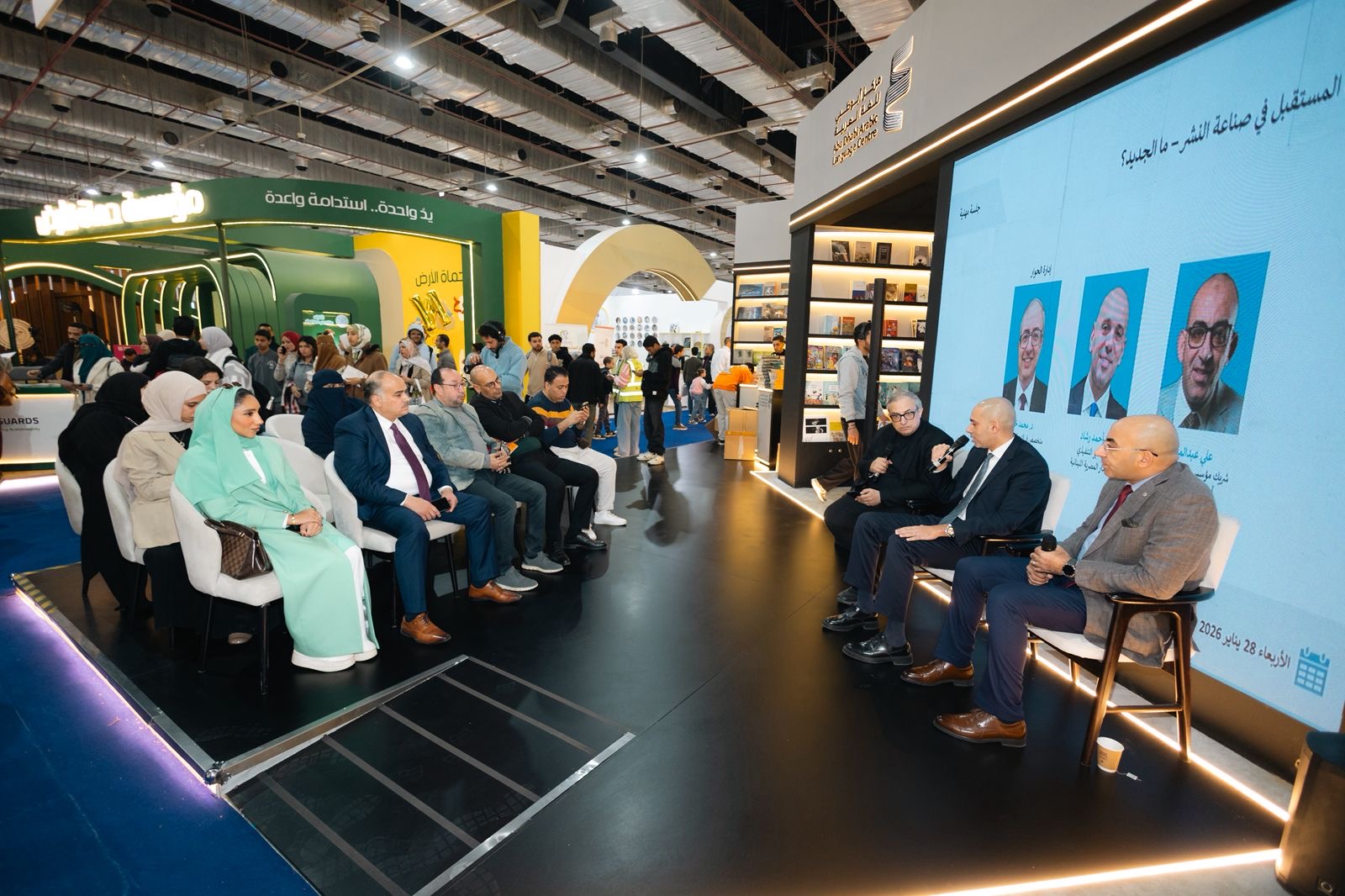 نظم جناح مركز أبوظبي للغة العربية، ضمن فعاليات معرض القاهرة الدولي للكتاب في دورته السابعة والخمسين، ندوة حوارية بعنوان «استشراف المستقبل في صناعة النشر.. ما الجديد؟»، بمشاركة المهندس علي عبد المنعم الشريك المؤسس والرئيس التنفيذي لشركة «عرب بوكفيرس» الدولية، والناشر أحمد رشاد المدير التنفيذي للدار المصرية اللبنانية، وأدار الندوة الدكتور محمد خليف المتخصص في الذكاء الاصطناعي وعضو المجلس الأعلى للثقافة.