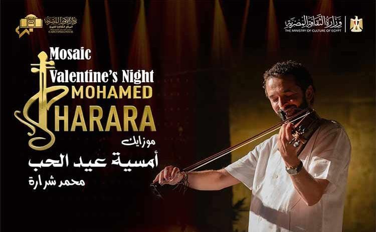 تنظم دار الأوبرا برئاسة الدكتور علاء عبد السلام حفلاً بعنوان " موزاييك .. أمسية عيد الحب " لعازف الفيولينة محمد شرارة وذلك في الثامنة مساء الخميس ٥ فبراير على المسرح الصغير .