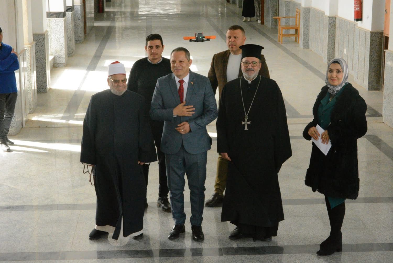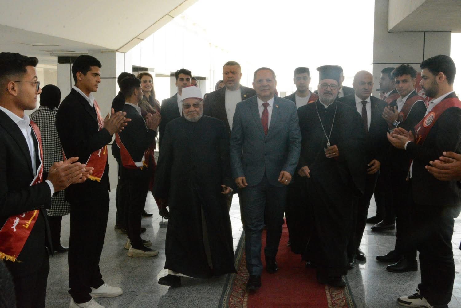 من جانبه، رحّب رئيس الجامعة بالدكتور أحمد كريمة، مؤكدًا أن استضافته تأتي في إطار دعم الفكر الوسطي وترسيخ قيم التسامح والانتماء، مشيرًا إلى أهمية نشر الوعي الصحيح بين الشباب.