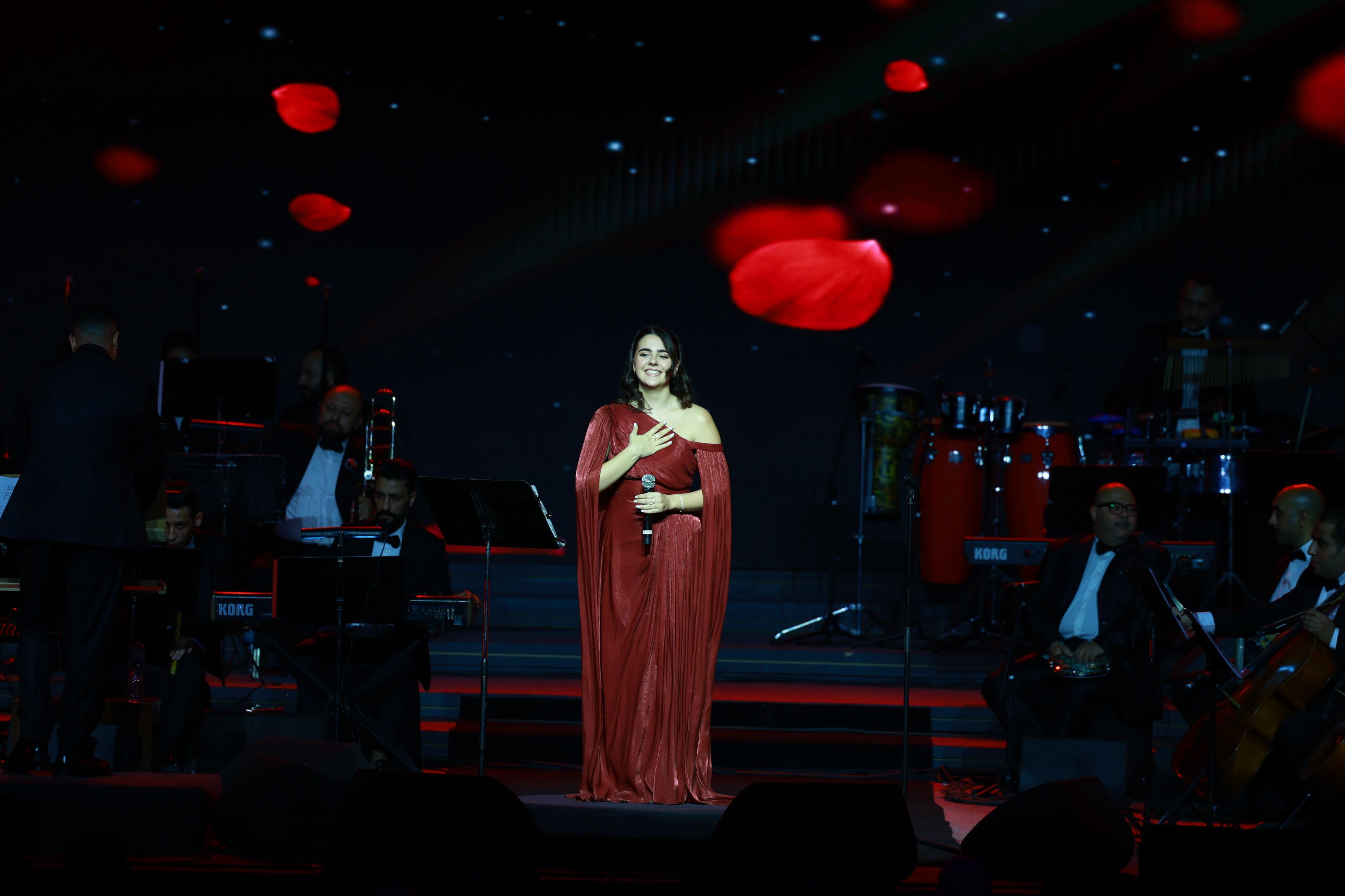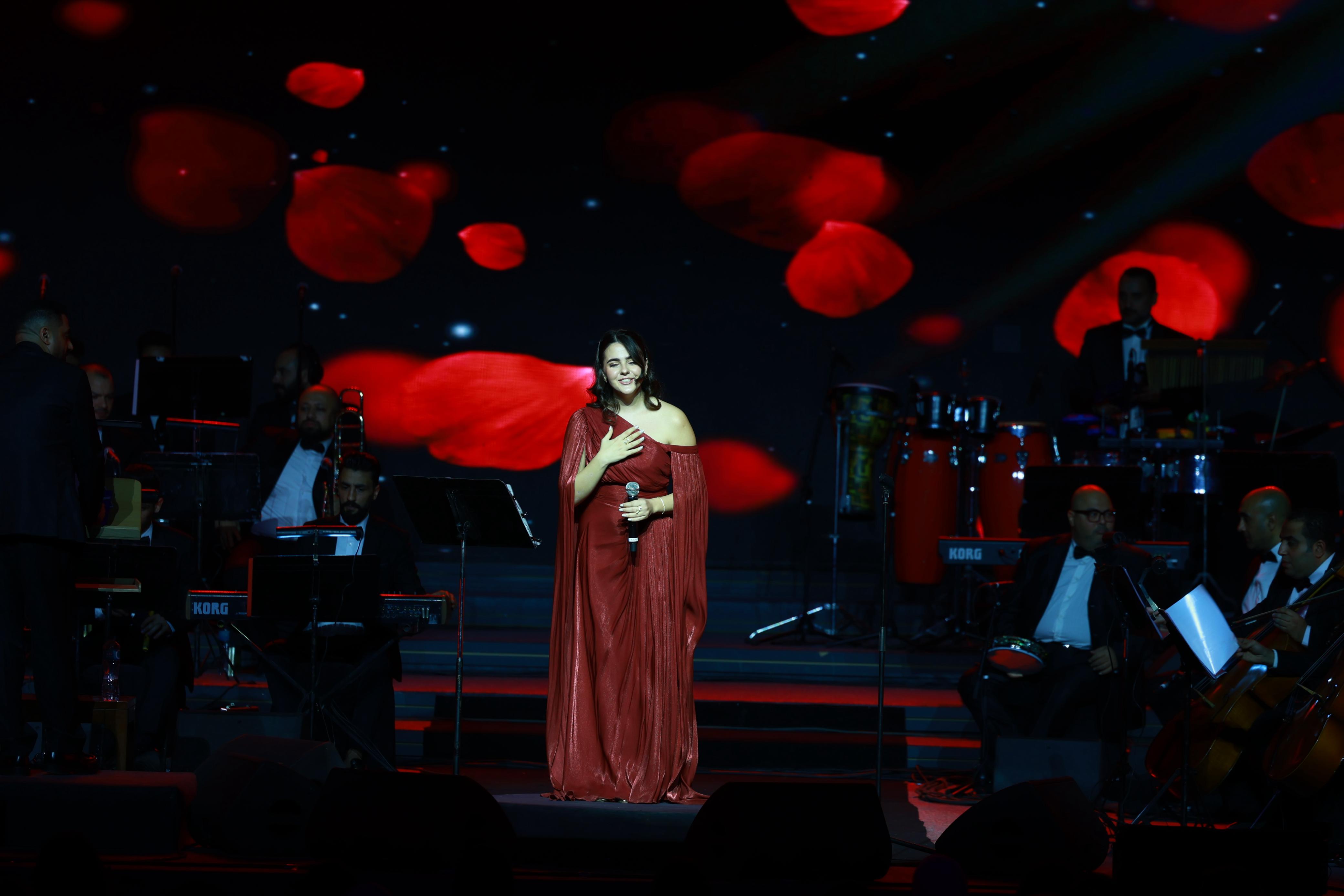 وبمصاحبة الفرقة الموسيقية بقيادة المايسترو عادل عايش، وبحضور مدير أعمالها تامر عبد المنعم، قدمت كنزي أداء باقتدار عكس موهبتها الفنية الفذة، بعدما قدمت برنامج غنائي يناسب الأجواء الرومانسية لهذه المناسبة العالمية.