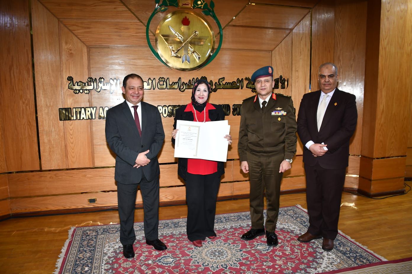 وكانت مراسم تسليم الشهادات قد جرت في مقر الأكاديمية العسكرية للدراسات العليا والإستراتيجية، بحضور الأستاذ مجدي لاشين امين عام الهيئة الوطنية للإعلام واللواء أركان حرب محمود أمين مدير كلية الدفاع الوطني، والدكتور حازم أبو السعود رئيس أكاديمية ماسبيرو.