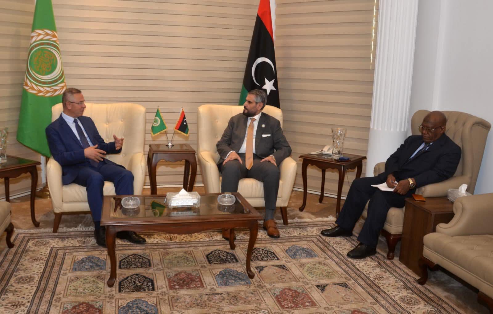 في إطار تعزيز التنسيق القومي لمواجهة التحديات الراهنة، شهدت القاهرة لقاءً دبلوماسياً رفيع المستوى جمع بين سعادة السفير عبد المطلب ثابت، المندوب الدائم لليبيا لدى جامعة الدول العربية والقائم بأعمال السفارة، والدكتور فائد مصطفى، الأمين المساعد للجامعة العربية ورئيس قطاع فلسطين.