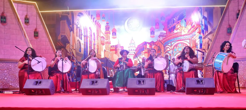 حيث امتلأ مسرح ساحة مركز الهناجر للفنون بالجمهور، لمشاهدة فقرات فرقة "طبلة الست" خلال حفل الليلة السادسة من برنامج "هل هلالك 10"، وأشعل الجمهور الأجواء تفاعلا ورددوا معهم الفرقة الأغاني، حيث قدمت الفرقة باقة متنوعة من الأغانى التراثية والفلكور المصرى، إلى جانب عدد من أغانى التى تعبر عن بهجة وفرحة رمضان .
