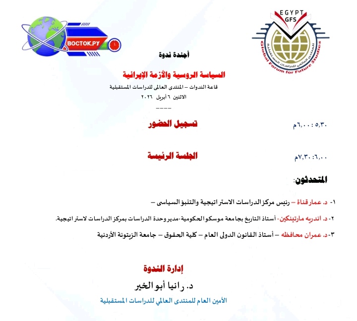 المتتدى العالمى للدراسات المستقبلية ينظم مائدة مستديرة حول ” السياسة الروسية والأزمة الإيرانية ”