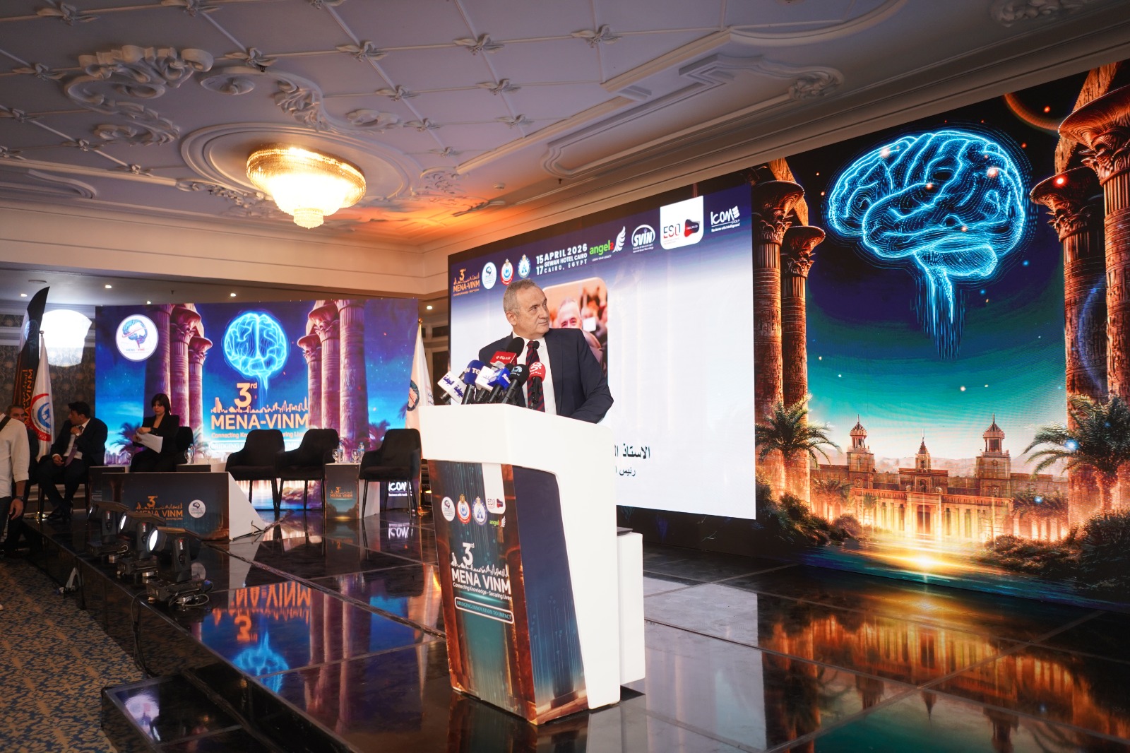 التقى الأستاذ الدكتور محمد مصطفى عبد الغفار، رئيس الهيئة العامة للمستشفيات والمعاهد التعليمية (GOTHI)، والأستاذ الدكتور أحمد البسيوني، رئيس جمعية الشرق الأوسط وشمال أفريقيا للأوعية الدماغية والقسطرة المخية (MINA-VINS) أعضاء مجلس إدارة جمعية الأوعية الدماغية والقسطرة المخية التداخلية (SVIN)، في خطوة محورية لتطوير علاج السكتة الدماغية والتدريب على القسطرة المخية، وذلك على هامش المؤتمر الثالث لـ جمعية الشرق الأوسط وشمال أفريقيا للأوعية الدماغية والقسطرة المخية (MENA‑VINM)، المنعقد في إحدى الفنادق بالقاهرة.